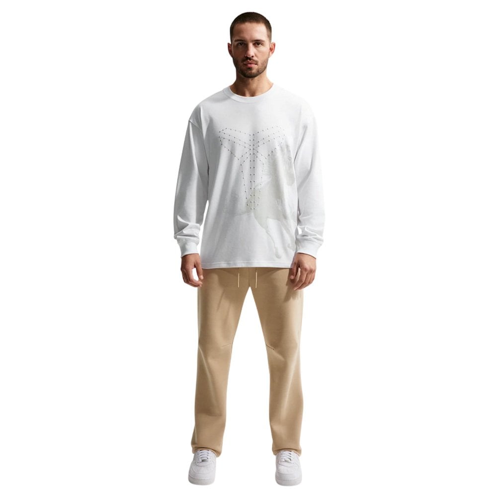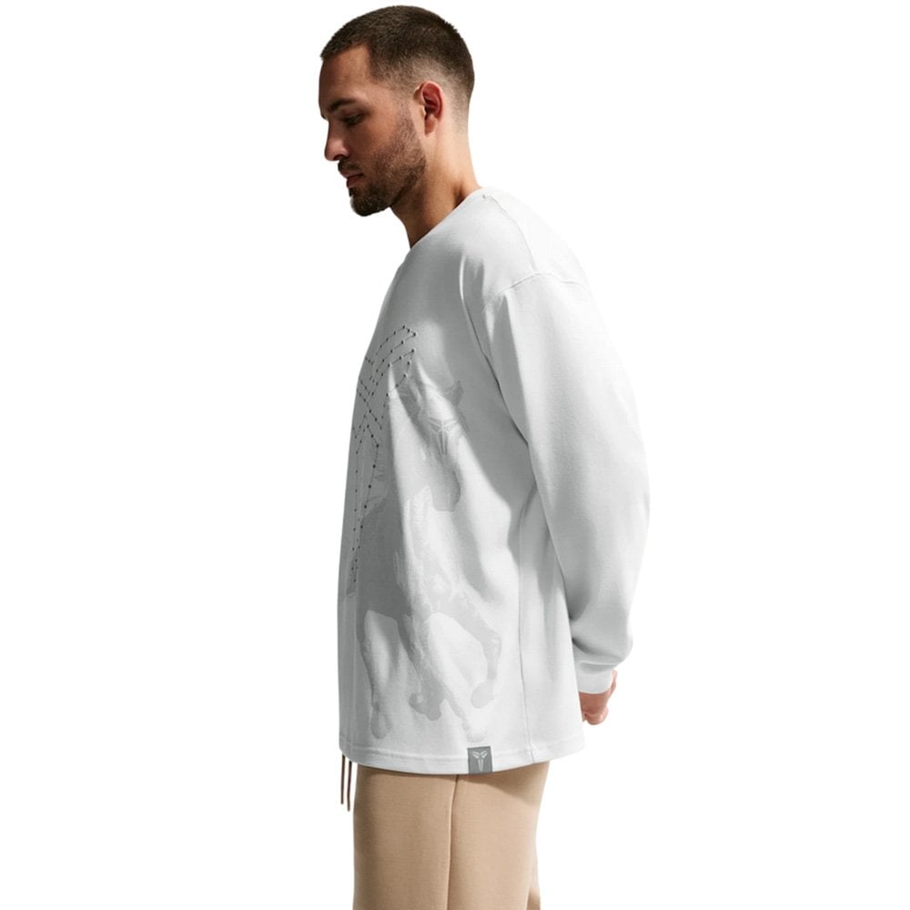 Футболка Nike Kobe — это уникальный дизайн, эстетика которого напрямую отражает празднование Лунного Нового года — одного из важнейших праздников в азиатской культуре. Белая ткань по всей поверхности символизирует чистоту и новые начинания, а тонкие детали создают атмосферу этого радостного, традиционного праздника, делая футболку чем-то большим, чем просто спортивной одеждой. Дизайнеры выбрали современный, свободный силуэт. Спущенные плечи в сочетании с удлиненными рукавами придают футболке характерный уличный стиль, одинаково хорошо подходящий как для игры на корте, так и для повседневной носки. Свободный крой обеспечивает неограниченную свободу движений, гарантируя полную свободу как во время интенсивных тренировок, так и во время отдыха. Технология Nike Dri-FIT дополняет образ. Усовершенствованная ткань активно отводит влагу от кожи к внешней поверхности, где она быстро испаряется, сохраняя сухость и комфорт даже во время самых интенсивных нагрузок. Это гарантирует сохранение характеристик футболки независимо от интенсивности вашей активности — от спокойной разминки до захватывающих матчей.
