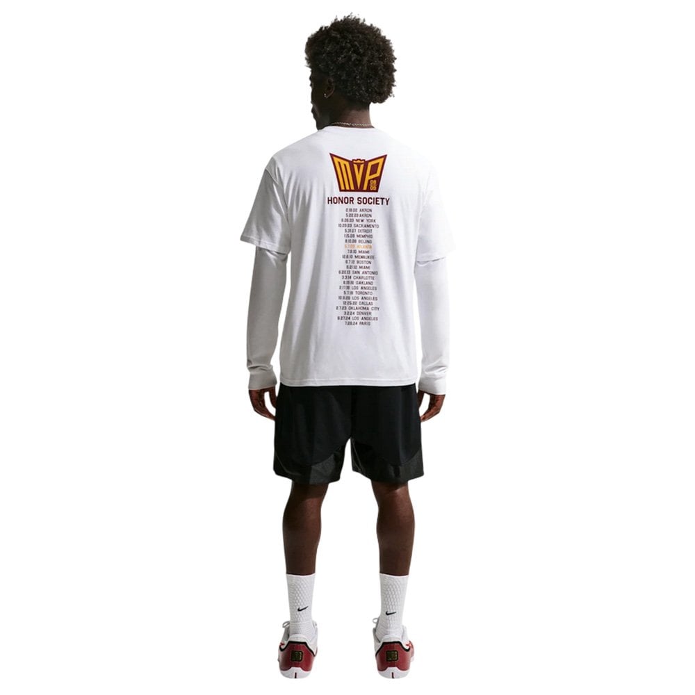 Футболка Nike LeBron "Honor Society" — это уникальная дань уважения одной из величайших легенд баскетбола. История этой коллекции восходит к дебютному сезону Леброна Джеймса, когда молодой игрок уверенно заявил Nike, что может играть в любой обуви — даже в рабочей. Эта безудержная уверенность, характерная для будущего короля площадки, стала главным источником вдохновения для легендарной расцветки Air Zoom Generation, модели, навсегда вошедшей в историю спортивной обуви и культуры кроссовок. Футболка напрямую отсылает к престижной награде, которую Леброн получил в знак признания его заслуг — первой из четырех, завоеванных им за свою феноменальную карьеру. Изготовленная из хлопка средней плотности, она приятна на ощупь и мягко облегает тело. Продуманный крой завершает образ: приспущенные плечи придают дизайну характерный уличный вид, удлиненные рукава обеспечивают дополнительную защиту и свободу движений, а свободный крой идеально вписывается в эстетику уличной моды, сохраняя при этом глубокие спортивные корни. Сочетание истории, культового дизайна и повседневной функциональности делает эти кроссовки обязательным приобретением для любого поклонника Леброна.