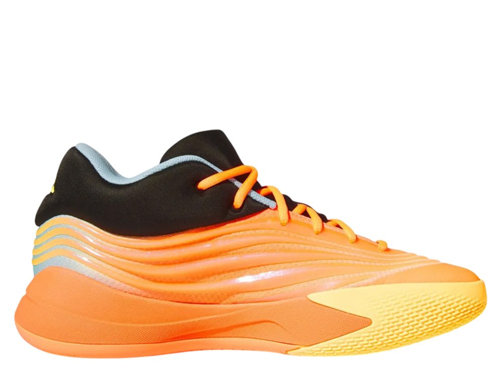 Кроссовки adidas Dame X 'All-Star' — это специальная версия именных кроссовок Дэмиана Лилларда, созданная специально для Матча всех звезд НБА. Хотя Дэмиан Лиллард не был номинирован на Матч всех звезд в этом сезоне, для этого случая была создана специальная версия его именных кроссовок adidas. Наиболее отличительной чертой этого дизайна является яркий оранжевый рисунок, включающий имя Дэмиана, его родной город Окленд и семь звезд, символизирующих его достижения и карьеру на сегодняшний день. Эти детали не только персонализируют кроссовки, но и рассказывают историю баскетболиста, который, несмотря на отсутствие номинации в этом году, остается одной из самых узнаваемых фигур в НБА. Характерные волнистые полосы динамично тянутся по всей верхней части, создавая плавный, органичный узор, который не только придает кроссовкам уникальный визуальный характер, но и идеально дополняет дышащие сетчатые слои, стратегически расположенные в ключевых зонах верха для обеспечения оптимальной вентиляции во время интенсивных тренировок и матчей. Сверхмягкий воротник — ключевой элемент дизайна, обеспечивающий усиленную поддержку лодыжки, необходимую для резких изменений направления движения, прыжков и приземлений, характерных для баскетбола высочайшего уровня. Технология амортизации Lightstrike, одна из последних разработок adidas в области материалов для спортивной обуви, обеспечивает отзывчивый возврат энергии при каждом шаге, прыжке и приземлении, гарантируя не только комфорт в течение всего дня во время интенсивных тренировок на площадке, но и поддержку естественного движения стопы, снижение мышечной усталости, что приводит к улучшению спортивных результатов и снижению риска травм.