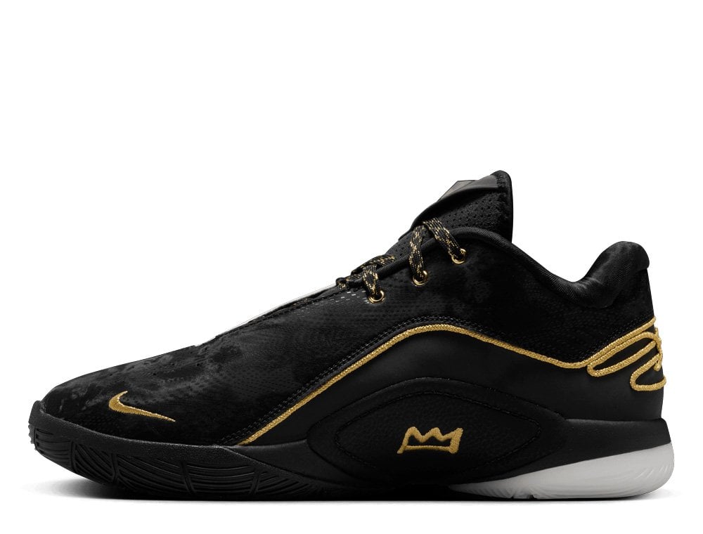 Кроссовки Nike LeBron XXII "Mogul" — это уникальная модель, сочетающая в себе современные технологии, роскошную отделку и символику, отражающую приверженность Леброна Джеймса принципам равенства и социальной справедливости. Эта особая пара отличается асимметричным дизайном, ставшим символом его неизменной приверженности равенству, и элегантными золотыми акцентами, подчеркивающими его королевский статус как на площадке, так и за ее пределами. Верхняя часть кроссовок выполнена из легких, но прочных материалов, обеспечивающих превосходную воздухопроницаемость и плотную посадку, гарантируя комфорт даже во время интенсивной игры. Кроме того, усиленные панели в ключевых зонах повышают износостойкость и устойчивость к истиранию. Прочная пластиковая пластина в межподошве и прочные боковые элементы в форме крыльев обеспечивают отличную устойчивость и поддержку при динамичных движениях. Ключевым элементом дизайна является большая вставка Air Zoom, расположенная в передней части стопы. Ее округлая форма обеспечивает гибкость в нескольких направлениях, значительно улучшая маневренность и отзывчивость к движениям игрока. Благодаря этому игроки могут рассчитывать на лучший контроль и скорость в динамичных игровых ситуациях.