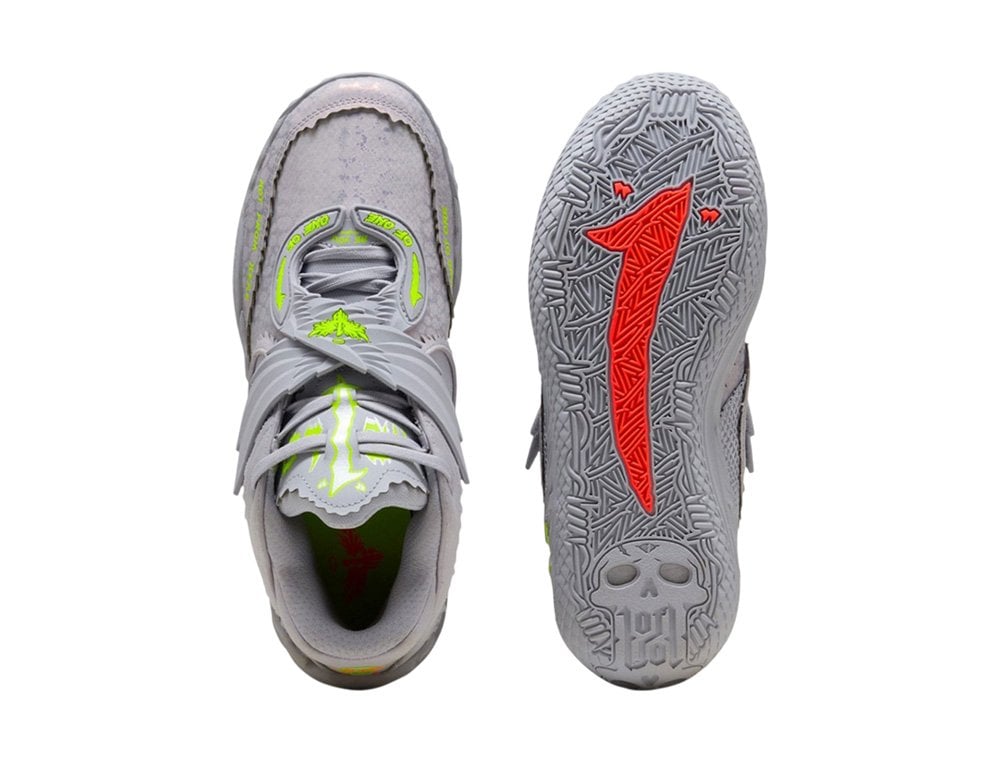 Кроссовки Puma MB.05 'Metallic' — это уникальная спортивная обувь, которая своим ярким цветом идеально отражает динамизм и энергию игры Мело, вдохновляя целое поколение на самовыражение на корте в своем неповторимом стиле. Дизайн этих кроссовок тщательно продуман до мельчайших деталей, сочетая функциональность с выразительным стилем. Пятка украшена контурными ремешками Wing, которые не только являются фирменным элементом бренда, но и обеспечивают дополнительную поддержку и устойчивость во время интенсивных движений. Основная сетка полностью покрыта узором Wing, создавая цельный и динамичный эстетический вид. Особого внимания заслуживают встроенные элементы персонализации, такие как фирменная надпись Мело «One of One», подчеркивающая индивидуальность каждого игрока, и скульптурный череп на подошве, добавляющий нотку бунтарства и уличного стиля. Созданные для скорости, стиля и результативности, бутсы MB.05 представляют собой идеальное сочетание спортивных характеристик и смелого дизайна, позволяющее игрокам доминировать на поле, выделяясь из толпы своей уникальной индивидуальностью и подходом к игре.