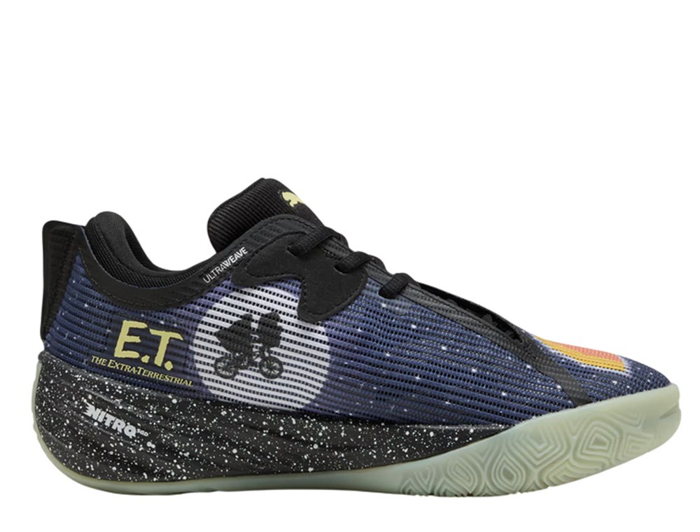 Кроссовки Puma All-Pro NITRO™ 2 ET — это уникальная коллекция, сочетающая в себе любимый классический фильм 80-х — «Инопланетянин» — с передовыми баскетбольными технологиями в космическом стиле, мастерски объединяющем функциональность, готовую к игре на площадке, с ностальгией по экранному образу. Этот дизайн, вдохновленный космосом, может похвастаться звездной подошвой, напоминающей звездное небо, а также многочисленными деталями, взятыми непосредственно из культового фильма, включая культовый силуэт Инопланетянина и Эллиота, едущего на велосипеде на фоне Луны. Кроссовки оснащены революционной амортизирующей технологией NITROFOAM™ для исключительной отзывчивости и комфорта при каждом движении на площадке. Верхняя часть изготовлена из переработанных материалов, что делает эти кроссовки не только стильным и функциональным выбором для любителей баскетбола и поп-культуры, но и экологически сознательным шагом к более устойчивому будущему спорта и моды.