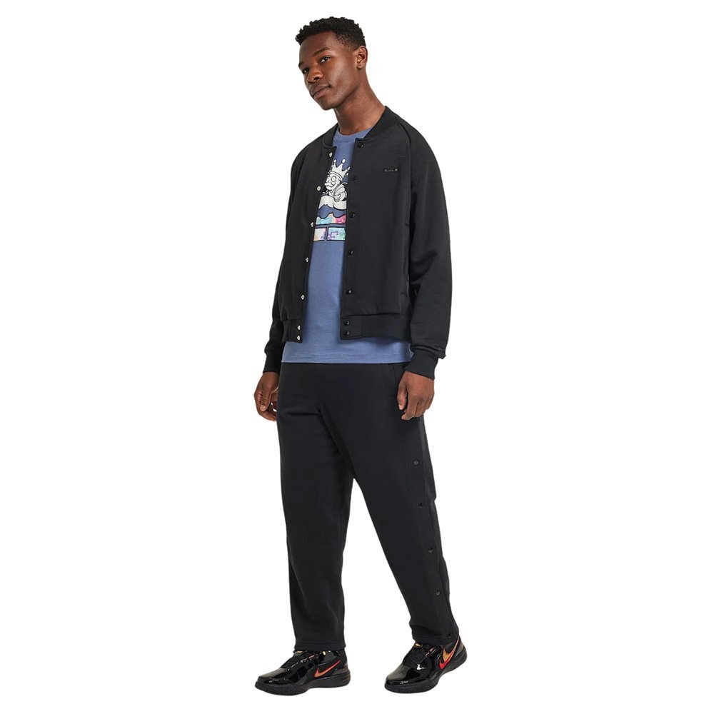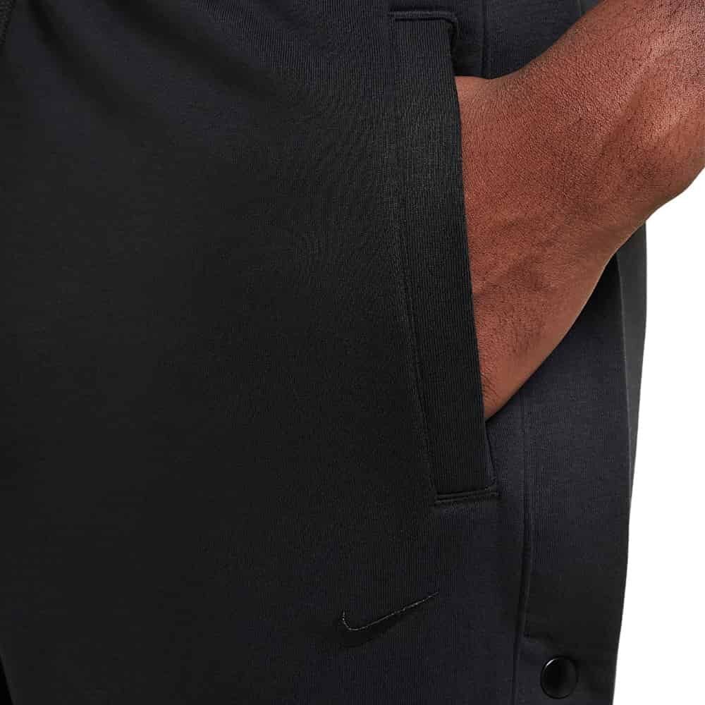 Брюки Nike LeBron Standard Issue Therma-FIT — универсальный предмет гардероба, созданный для максимального комфорта и защиты от холода. Теплый трикотаж средней плотности, используемый в них, эффективно защищает от низких температур, не ограничивая при этом свободу движений. Практичное решение в виде легко отстегивающихся кнопок и свободного низа позволяет быстро подогнать брюки под текущие потребности и предпочтения пользователя. Используемая технология Nike Therma-FIT эффективно управляет теплом тела, создавая оптимальную теплоизоляцию и отводя лишнюю влагу. Функциональность брюк увеличивается за счет бокового кармана на молнии, который позволяет безопасно хранить необходимые мелкие предметы во время активности. Эта модель — дань уважения легенде баскетбола — Леброну Джеймсу, что подчеркивается характерными деталями: вышитым логотипом с короной и тканой нашивкой на спине.