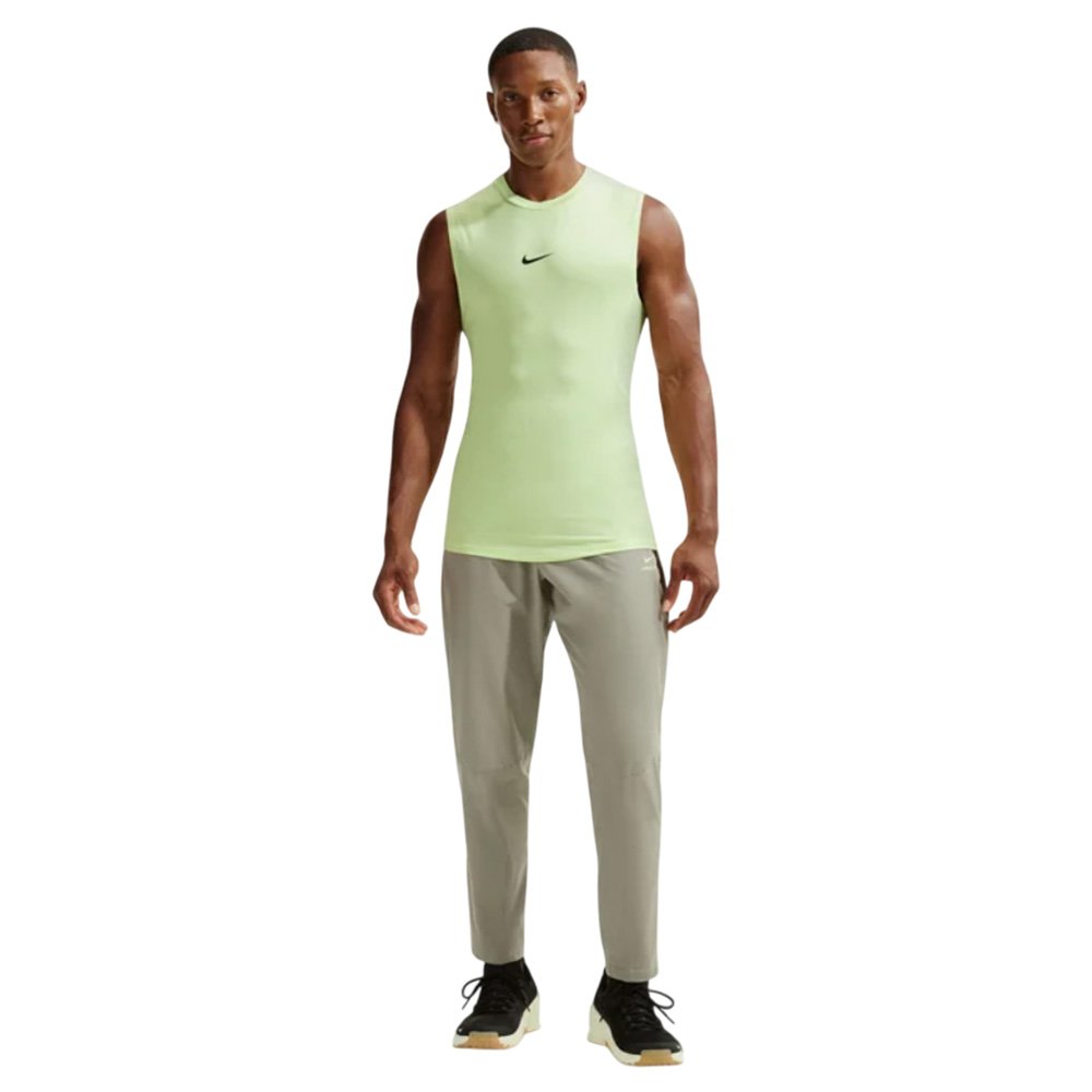 Тренировочные брюки Nike Pro Training Pants — отличный выбор для активных людей, ценящих комфорт и функциональность во время тренировок. Они изготовлены из гладкой, ультраэластичной ткани, которая идеально облегает тело и обеспечивает полную свободу движений. Передовая технология Dri-FIT эффективно отводит влагу от кожи к внешней поверхности ткани, где она быстро испаряется, сохраняя ощущение свежести и сухости даже во время самых интенсивных тренировок. Брюки оснащены практичными карманами на молнии для безопасного хранения мелких предметов, чтобы не бояться их потерять во время тренировки. Особого внимания заслуживает облегающий крой в области колен, разработанный для предотвращения образования складок ткани во время приседаний, выпадов и наклонов, что значительно повышает комфорт во время тренировок и устраняет отвлекающие факторы. Эластичный пояс со шнурком обеспечивает идеальную посадку. Важно отметить, что брюки изготовлены из переработанных полиэфирных волокон, что делает их экологически чистым выбором и отражает экологическую ответственность Nike.