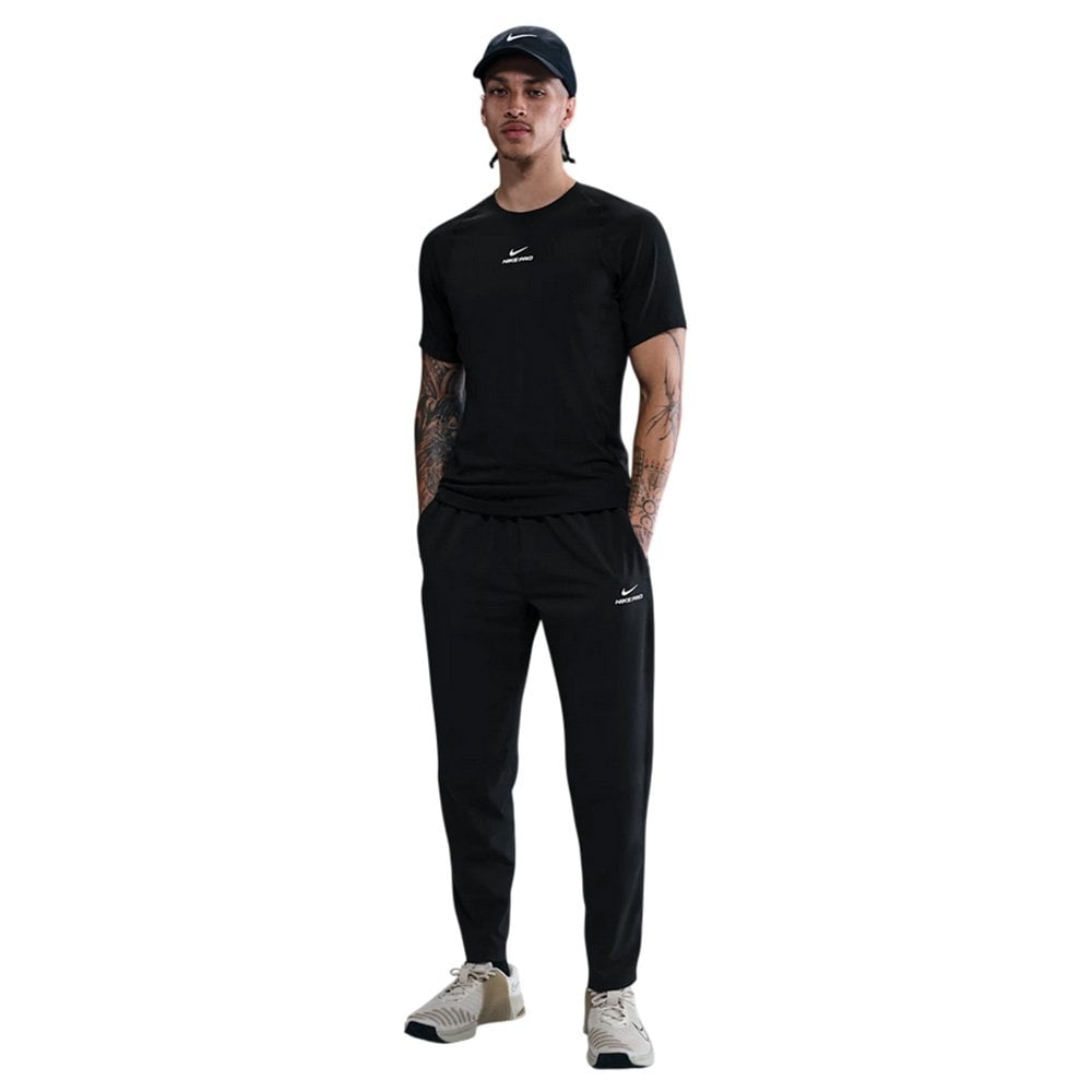 Тренировочные брюки Nike Pro Training Pants — отличный выбор для активных людей, ценящих комфорт и функциональность во время тренировок. Они изготовлены из гладкой, ультраэластичной ткани, которая идеально облегает тело и обеспечивает полную свободу движений. Передовая технология Dri-FIT эффективно отводит влагу от кожи к внешней поверхности ткани, где она быстро испаряется, сохраняя ощущение свежести и сухости даже во время самых интенсивных тренировок. Брюки оснащены практичными карманами на молнии для безопасного хранения мелких предметов, чтобы не бояться их потерять во время тренировки. Особого внимания заслуживает облегающий крой в области колен, разработанный для предотвращения образования складок ткани во время приседаний, выпадов и наклонов, что значительно повышает комфорт во время тренировок и устраняет отвлекающие факторы. Эластичный пояс со шнурком обеспечивает идеальную посадку. Важно отметить, что брюки изготовлены из переработанных полиэфирных волокон, что делает их экологически чистым выбором и отражает экологическую ответственность Nike.