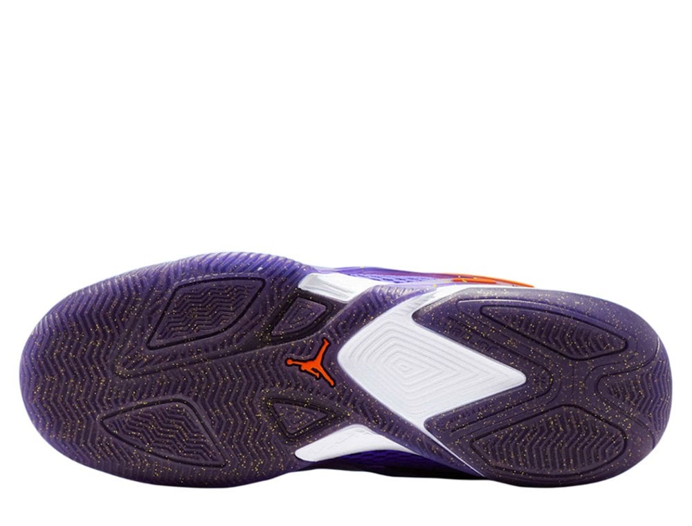 Кроссовки Jordan Heir "Royalty" — это воплощение роскоши и изысканного стиля, созданное для тех, кто не боится выделяться. В этой уникальной модели преобладает глубокий фиолетовый оттенок, который почти полностью покрывает верхнюю часть, придавая ей величественный, почти королевский вид. Фиолетовые вставки дополнены замысловатыми вышитыми узорами на язычке, боковых панелях и пятке, что придает дизайну элегантный и художественный вид. Золотые акценты — в виде мерцающих логотипов Jumpman на язычке и пятке, а также блестящей задней петли — еще больше подчеркивают престижный характер модели, напоминая королевскую корону или эмблему. Золотые вкрапления, ненавязчиво расположенные на полупрозрачной подошве и в структуре пластикового каркаса из ТПУ, также выделяются, сверкая при каждом шаге. Эта деталь добавляет глубины и роскоши, не жертвуя спортивным духом. Оранжевые акценты — видимые на каркасе, верхних люверсах для шнурков и петлях для пальцев — разбавляют доминирующую цветовую гамму, добавляя смелый, энергичный акцент. Этот контраст придает обуви уникальный, современный вид, сочетая классический стиль со смелым уличным дизайном. Jordan Heir "Royalty" — это больше, чем просто кроссовки, это заявление о стиле, силе и неповторимом характере. Идеально подходит для тех, кто ищет обувь с душой и королевской родословной.