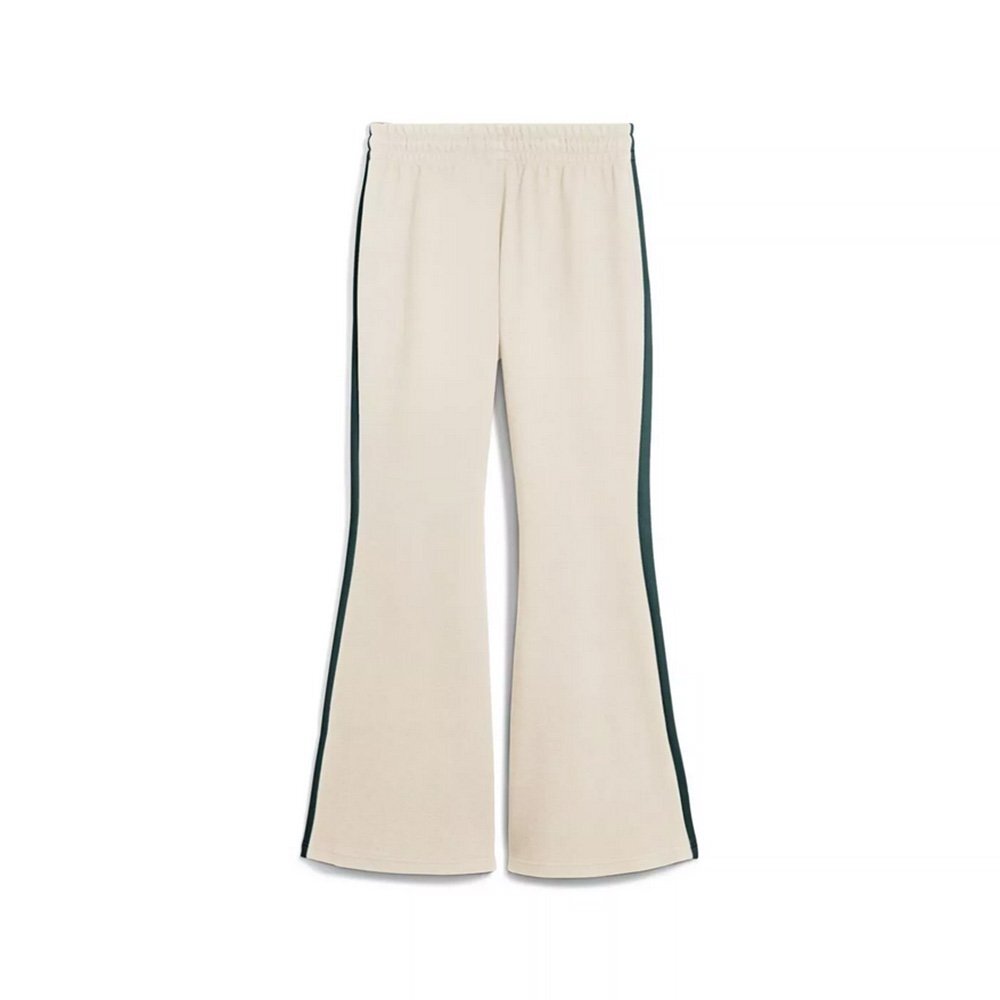 Брюки-клеш Puma T7 — это уникальное сочетание спортивного стиля и модного расклешенного кроя, добавляющего женственности. Изготовленные из высококачественной смеси хлопка и полиэстера, они обеспечивают оптимальный комфорт в течение всего дня, оставаясь при этом прочными и устойчивыми к частой стирке. Материал мягкий на ощупь, дышащий и эластичный, обеспечивая идеальную посадку. Характерный расклешенный крой, расширяющийся от колена вниз, визуально удлиняет ноги и создает эффектный силуэт, перекликаясь с ретро-трендами 1970-х годов, которые сейчас возвращаются в современном исполнении. Незаметный логотип Puma, расположенный на брюках, подчеркивает аутентичность бренда, не доминируя в общем стиле. Эти универсальные брюки идеально подходят как для повседневной носки, так и для более элегантных образов, создавая вневременной стиль, сочетающий комфорт с последними тенденциями спортивной одежды.