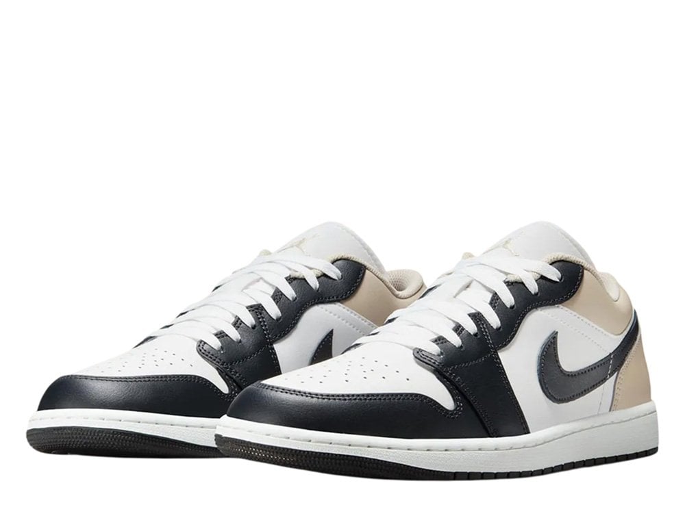 Кроссовки Air Jordan 1 Low отличаются классическим дизайном, подчеркнутым бежево-черно-белой цветовой гаммой. Благодаря своему культовому дизайну и цветовой палитре, эти кроссовки станут незаменимым элементом гардероба. Они оснащены амортизирующей вставкой Air Sole, обеспечивающей легкую и эффективную амортизацию. Резиновая подошва улучшает сцепление с различными поверхностями.