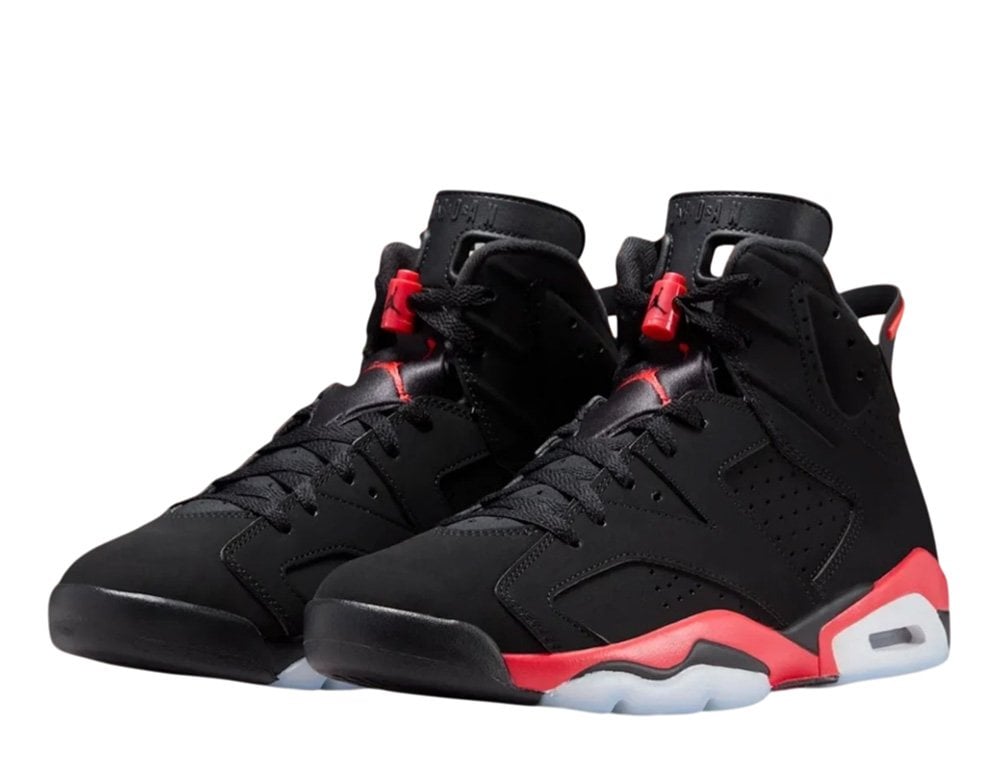 Кроссовки Air Jordan 6 Retro 'Infrared Salesman' — это специальная серия, созданная в честь 35-летия легендарного силуэта Air Jordan 6, ставшего неотъемлемой частью истории кроссовок и уличной моды. Jordan Brand отметил эту годовщину выпуском как новых, так и классических расцветок этой культовой модели, и 'Reverse Infrared' — одна из самых ожидаемых версий среди коллекционеров и поклонников бренда. Эта пара отсылает к культовому релизу 1999 года, сохраняя стиль и эстетику, характерные для той эпохи. Верх выполнен из высококачественного нубука глубокого черного цвета, создавая элегантную и минималистичную основу для всего дизайна. Боковые панели имеют характерную перфорацию, которая не только визуальна, но и функциональна, обеспечивая улучшенную вентиляцию во время носки. Изюминкой этой модели является использование светло-бордового цвета, который доминирует на большей части подошвы, создавая яркий контраст с черным верхом и придавая обуви динамичный, современный характер. Этот яркий оттенок красного также присутствует в ключевых элементах обуви – логотип Jumpman на язычке, фирменная застежка шнурков и надпись Nike Air на задней части кроссовка – все это сочетает в себе наследие бренда с современным дизайном. Вместе они создают целостный образ, отдающий дань истории Air Jordan 6 и одновременно представляющий свежий взгляд на классическую расцветку, очаровывая как давних поклонников серии, так и новое поколение любителей кроссовок.