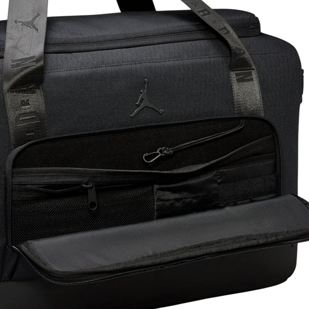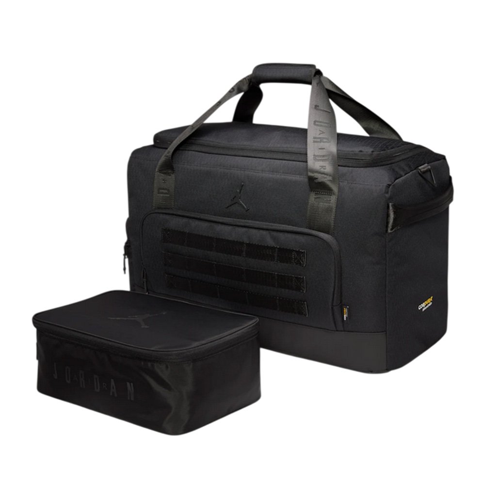 Сумка Jordan Collectors Duffel Bag — настоящая находка для любого ценителя кроссовок или настоящего коллекционера. Изготовленная из исключительно прочного материала CORDURA®, она невероятно устойчива к истиранию, разрывам и царапинам, гарантируя сохранение своего первозданного вида даже после интенсивного использования. Материал также имеет специальное водоотталкивающее покрытие, защищающее ваши ценные кроссовки от влаги и суровых погодных условий. Переднее отделение оснащено практичными карманами-органайзерами для удобного хранения, а верхний клапан с застежкой обеспечивает надежный доступ к содержимому. Внутри расположены регулируемые, выдвижные и мягкие разделители, которые можно настроить под ваши нужды. В комплект также входит вентилируемый органайзер с обтекаемой молнией и удобной ручкой, идеально подходящий для хранения мелких предметов коллекции или дорожных аксессуаров. Основные размеры сумки: высота 13 дюймов, длина 22 дюйма и глубина 9,5 дюймов, что обеспечивает достаточно места для нескольких пар обуви и дополнительных вещей. Входящий в комплект органайзер имеет размеры 5 дюймов в высоту, 10,5 дюймов в длину и 8,5 дюймов в глубину.